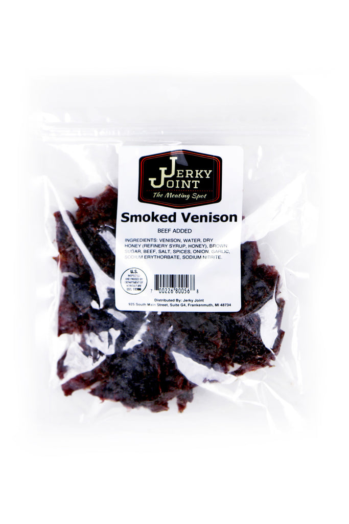INGREDIENTS: Venison, Water, Sweetener (Cane Sugar, Honey), Brown Sugar, Beef, Salt, Less Than 2% Spices, Onion, Garlic, Cultured Celery Powder, Sea Salt.